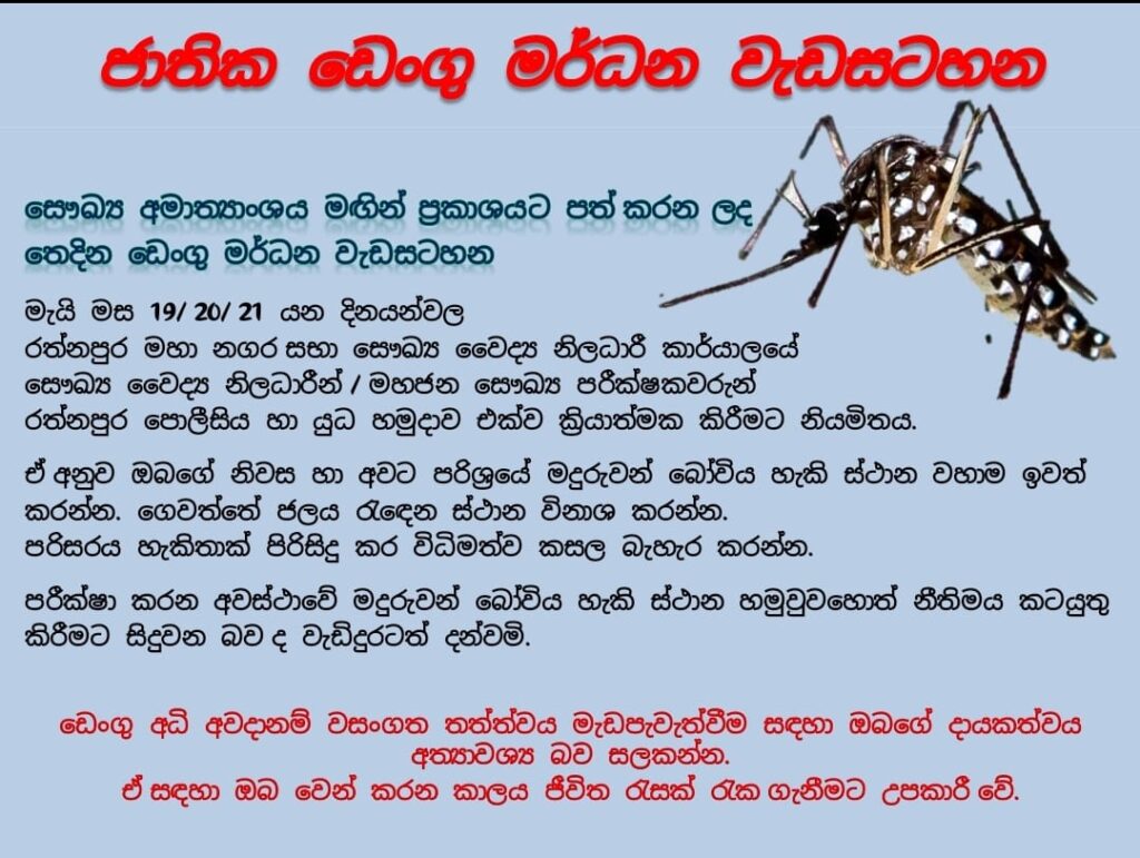 ජාතික ඩෙංගු මර්දන වැඩසටහන මැයි 19 / 20 / 21